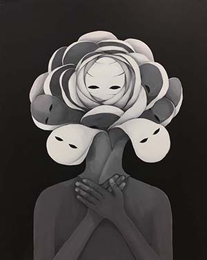 사실을 말하자면 작가는 자신의 그림 속에 어느 정도 상처의 실체를 암시해놓고 있다. 왜곡된 얼굴과, 이목구비가 개연성 없이 마구 재구성된 얼굴, 그리고 무슨 메두사의 뱀 머리처럼 머리칼을 풀어헤친 얼굴에